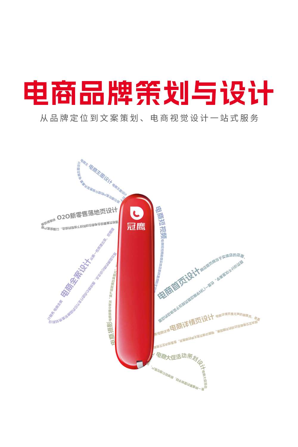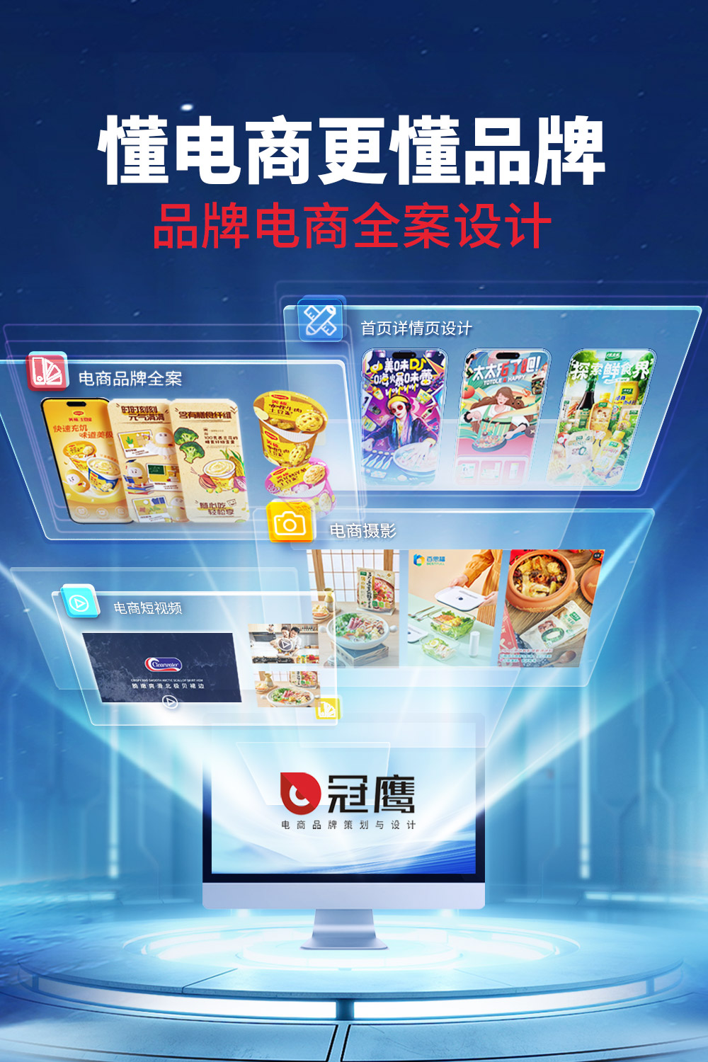 冠鹰拥有一支充满激情、富有经验的电商策划设计团队,用数字化思维构建品牌,透过大数据洞察市场和消费者,设计上我们追求“品效合一”,杜绝浮华创意,为客户提供电商全案、电商设计、商业摄影等设计策划服务,助力品牌在竞争激烈的电商平台中脱颖而出,我们不仅为统一、太太乐、美极、鲁花等多家知名头部品牌提供专业的电商设计服务,也为姿旅、嬏娜、百思福等成长型企业提供量身定制的策划设计服务,凭借多年的电商实战经验,我们将助力更多的电商品牌成为品牌电商!